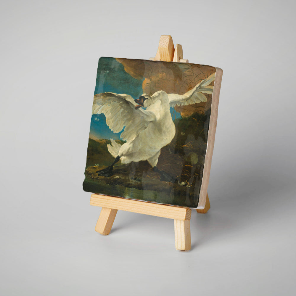Kunsttegeltje is kunst en ambacht van eigen bodem. De tegeltjes worden volgens eeuwenoude traditie met de hand gemaakt en afgebakken. Ieder tegeltje is hierdoor een uniek meesterwerkje. Zet het tegeltje artistiek neer op het meegeleverde houten ezeltje.